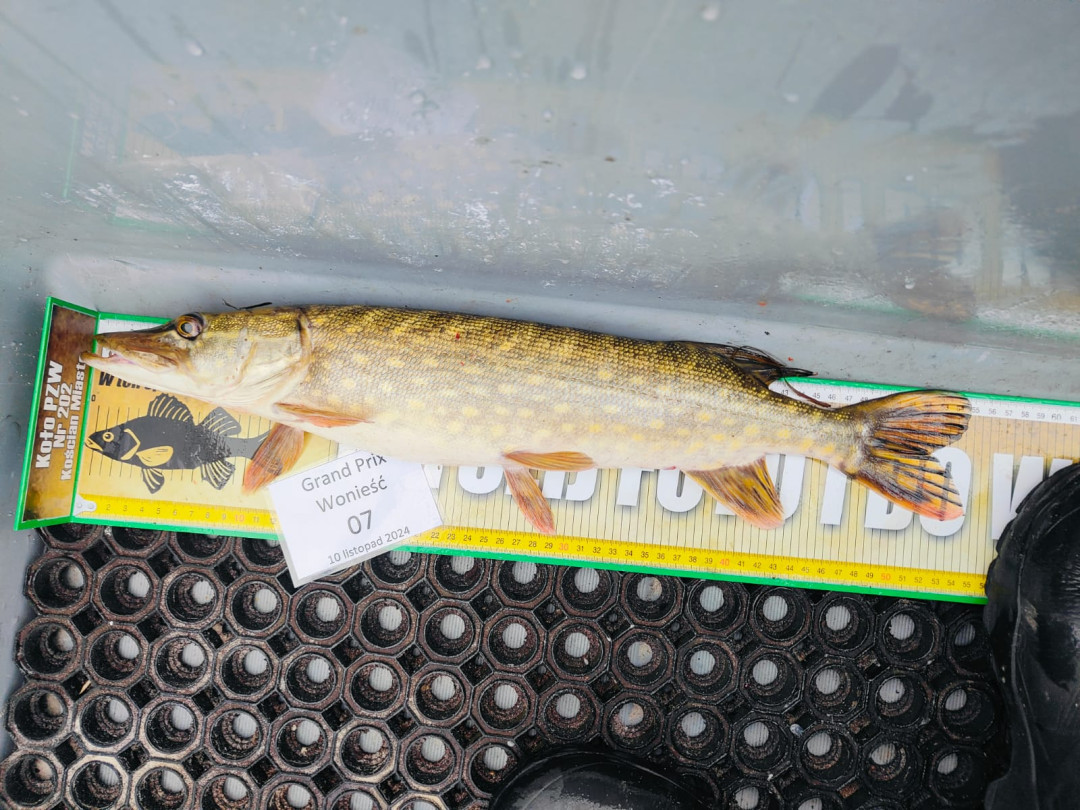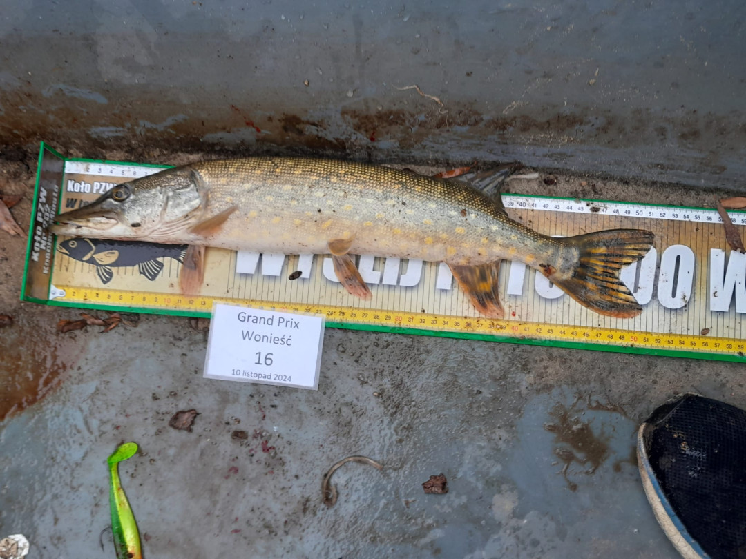 Za nami III – finałowa tura zawodów spinningowych Grand Prix Wonieść 2024 Niedziela, 10 listopada mimo optymistycznych prognoz pogody była typowo listopadowa: zimno i mgliście na szczęście bez opadów i silnego wiatru. W zawodach uczestniczyło 14 zawodników, którzy łowili tylko szczupaki – w tym dniu 21 „zębatych” zameldowało się na miarze i wróciło do wody.
